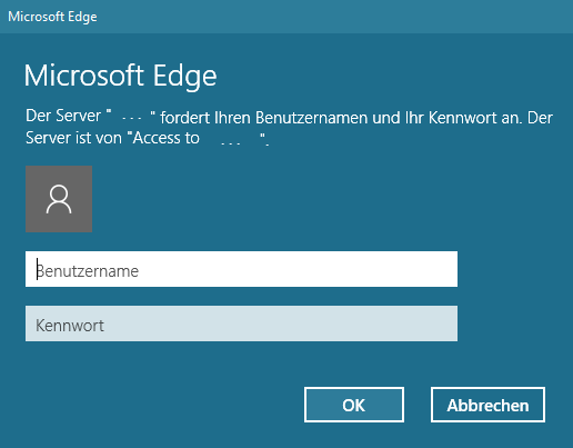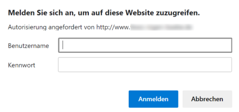Es erscheint zuerst eine Sicherheitsanmeldung für das Backend. Je nach verwendetem Browser und Betriebssystem kann diese Sicherheitsanmeldung anders aussehen. Z.B.: