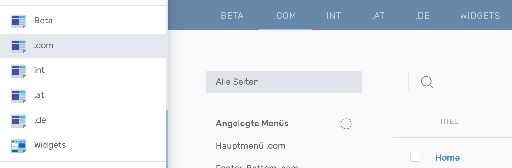 Ist die Seite Mehrsprachig, wird dies sowohl in der Liste durch Sprachicons angezeigt